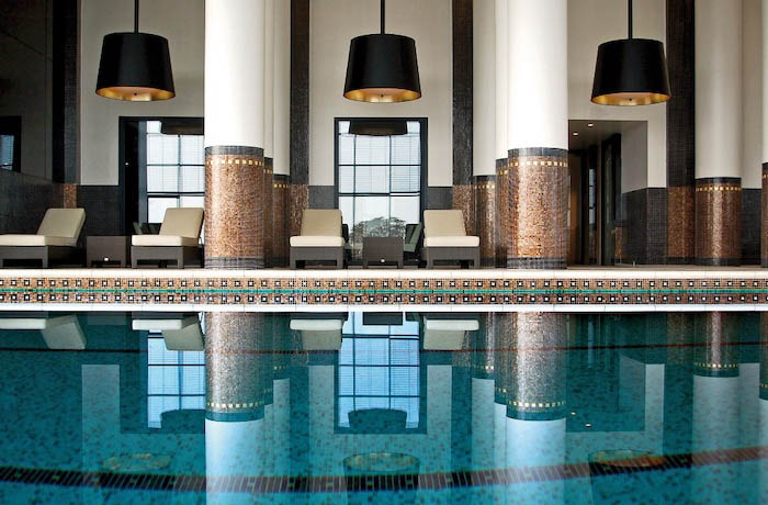 -une entrée au Spa Diane Barrière : luxueux centre de bien-être face au lac avec bassins, hammam, sauna, gym aquatique, fitness.