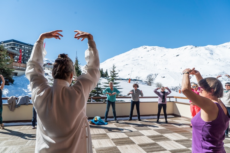 Et tout au long de la semaine, des initiations à l'ayurveda, au tai-chi, séances de naturopathie, réflexologie plantaire (apprendre l'auto massage), bains sonores, yin à la bougie, atelier yoga-ski, marche méditative…