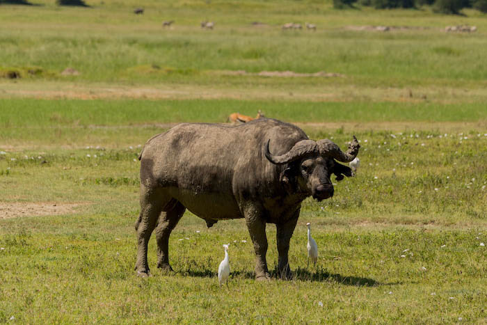 Le buffle est le plus facile à observer. En effet, il vit en grands troupeaux qui comptent facilement plusieurs milliers d'individus se déplaçant à travers tout le pays. Il est omniprésent lors de la Grande Migration, en compagnie des zèbres et des gnous.