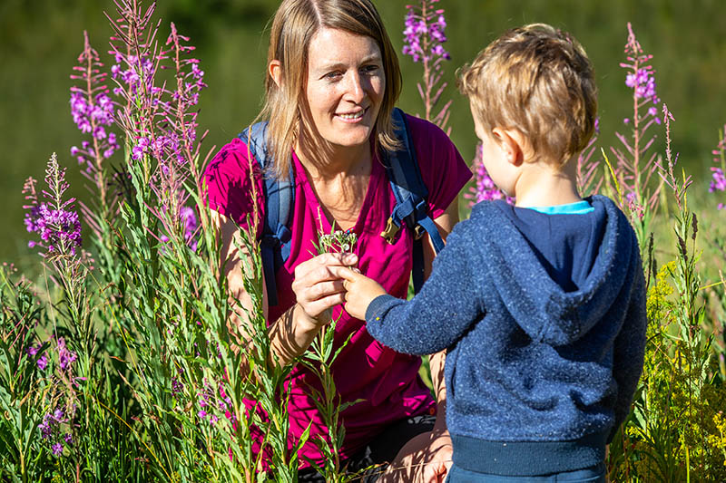Pendant la randonnée, faites des pauses diverses et variées : fabriquez un cairn, faites des ricochets dans la rivière, cherchez des fleurs et reconnaissez-les, regardez aux jumelles, ravitaillez-vous, etc…