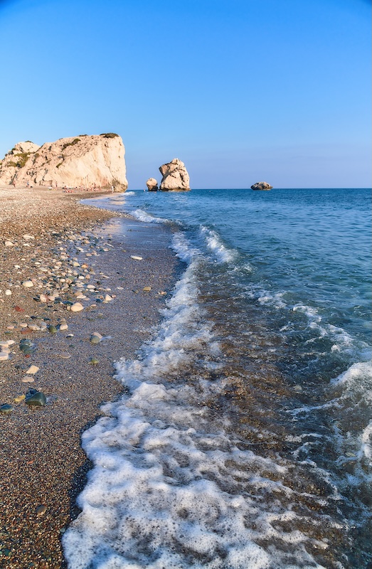 Plus au large, le rocher de Petra tou Romiou, lieu mythique de la naissance d'Aphrodite, offre un panorama spectaculaire, particulièrement au coucher du soleil lorsque la mer scintille sous la lumière dorée.