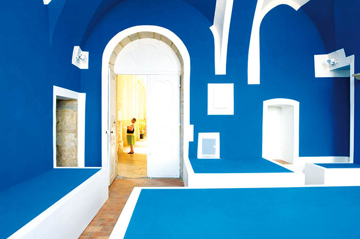 Bordant une vallée verdoyante et le royal canal du Nivernais, Corbigny et son abbaye se dévoilent. Cet édifice classé Monument Historique revêt un charme fou avec sa façade en pierre datant de 1754. Puis pénétrant à l‘intérieur, l'expérience prend une nouvelle forme : elle devient artistique et même avant-gardiste. Lieu d'exposition de 3 compagnies d'artistes contemporains, elle est au carrefour des disciplines, du théâtre à la danse en passant par la peinture... Et sur ce point, zoom sur l'oeuvre de Krijn de Koning, qui a subtilement habillé de bleu les anciennes cuisines du monastère, devenues la Salle Bleue. Jouant avec l'espace et les volumes, il a su accentuer les détails architecturaux dans un style enchanteur et créer une atmosphère voyageuse avec cette peinture murale bleue très dense. De son nom Omvang, Omgang, on pourrait traduire tour et détour… un lieu que l'on aimerait sans retour !