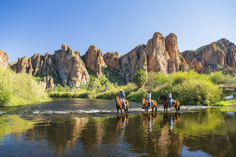 La Salt River crée une oasis idéale pour kayak et tubing. Lake Pleasant et Saguaro Lake invitent baignade, paddle et excursions en bateau.