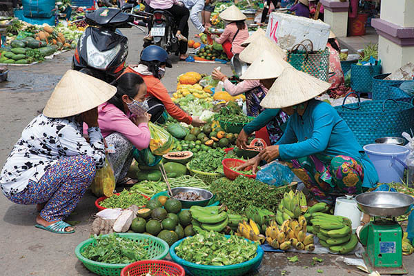 Métissé à Cholon, au sud-ouest de la ville, le quartier chinois se pare de pagodes et de temples. De vieilles échoppes, des herboristeries traditionnelles et de nombreux petits restaurants de rue entourent la grande halle du marché Binh Tay. Tissus, quincailleries, volailles, fruits secs, poissons séchés s'y côtoient dans un joyeux capharnaeum. Dépaysement assuré ! Une soupe, un plat de nouilles, des nids d'hirondelles, des ailes de requins ou autres ingrédients médicinaux, l'occasion est rêvée pour tester la cuisine locale dans une immersion totale. Ambiance plus touristique au marché Bên Thanh (ou marché central) où se retrouvent, sous son vaste dôme et son beffroi, plus de 1 200 stands. Une pause shopping à ne pas rater !