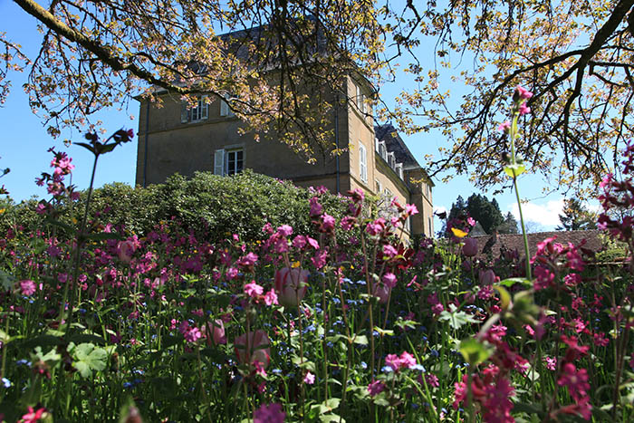Dans ce domaine du XIXe siècle, les bâtisses ont été transformées en gîtes confortables : la maison du garde-forestier ou celle du métayer ont gardé leur âme mais changé leurs habitudes ! Tout autour, le parc, lui aussi couronné du label « Jardin remarquable », se compose d'innombrables parterres fleuris de toutes les couleurs. Entre autres variétés de fleurs, on retrouve roses, glycines, iris, et pivoines qui ravissent les sens visuels et olfactifs. Lors de notre visite, on déambule le long des allées fleuries, on respire le parfum des rhododendrons géants, on se concocte une potion magique au Jardin d'herbes médicinales, et l'on joue à cache-cache derrière les cèdres et les séquoias qui entourent le Château de la Chaux depuis le XIXème siècle. On s'émerveille au Clos des Prunus, qui se parent de magnifiques couleurs rose pastel au printemps, et l'on repart la tête remplie de couleurs.
