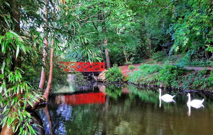 Eden d'inspiration anglaise, il se découvre lors d'une balade romantique, entre jungles de bambou et longs massifs de vénérables camélias et rhododendrons, arbres exotiques séculaires avec le séquoia géant, ginkgos bilobas, cyprès chauves de Louisiane, tulipiers de Virginie ou encore hêtres pourpres...., et s'achève au pied de l'ancien château d'eau.