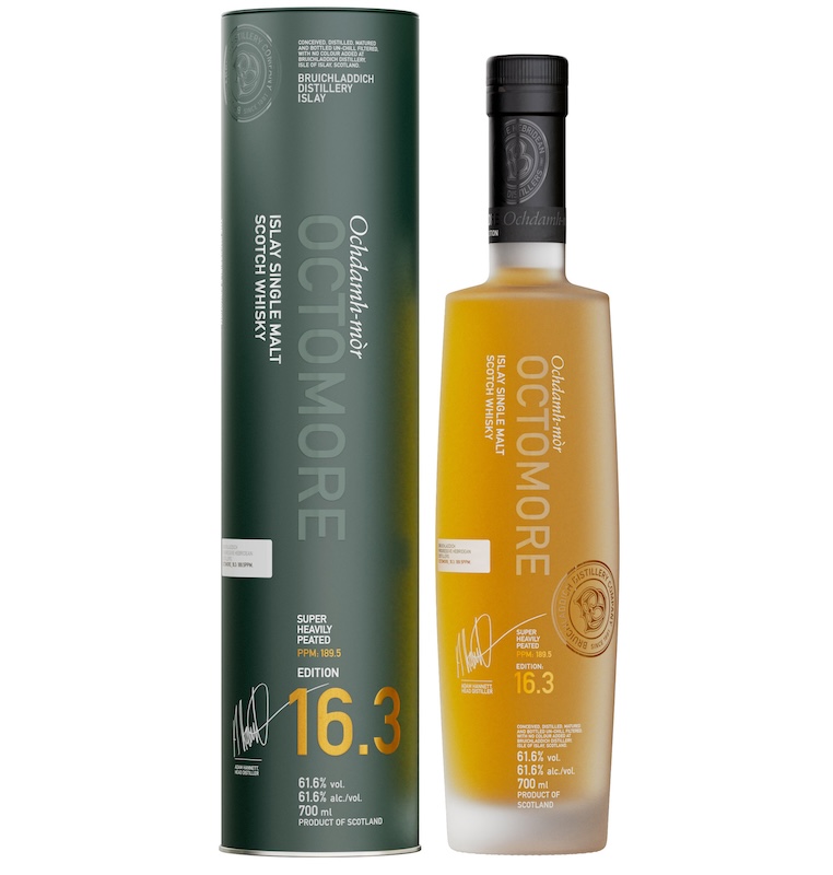 Edition ultra-limitée et millésimée, fortement tourbée à 189,5 PPM, elle est élaborée à partir d'orge cultivée exclusivement sur la ferme Octomore. Le nez allie bruyère, fumée, sucre d'orge et pain frais avec zestes de citron et touches florales. La bouche révèle malt miellé, céréales toastées, fruits du verger, agrumes et vanille, avec une fumée maîtrisée et une salinité subtile. La finale, douce et florale, laisse place à une fumée délicate et à des notes minérales. 70 cl, 59,9% vol., 290 €.