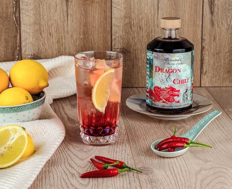 La liqueur Dragon&Chili® se prête volontiers aux cocktails et Pierre Boueri, mixologiste de la Distillerie Massenez depuis les années 2000 en a partagé 3 avec nous. Faciles à réaliser, Ils révélent toutes les subtilités de cette nouvelle liqueur étonnante.