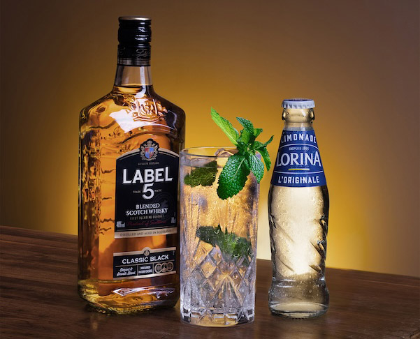 Rien de plus simple : seulement 2 ingrédients et aucun matériel spécifique ! Il suffit de remplir de glaçons un grand verre à fond plat, d'ajouter 5 cl de Whisky LABEL 5 Classic Black et d'allonger généreusement de limonade Lorina. Avec 3 ou 4 feuilles de menthe pour renforcer les notes rafraîchissantes et sublimer le cocktail, le tour est joué. Il n'y a plus qu'à mélanger délicatement avec une cuillère.