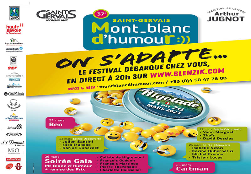 Véritable soutien au spectacle vivant et au tissu économique de proximité, ce 37ème Saint-Gervais Mont-Blanc d'Humour mise sur une organisation 100% locale et une programmation culturelle d'artistes « émergents » et de spectacles inédits.