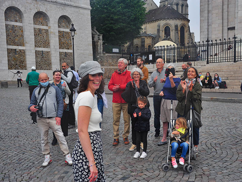 Une voix retentit dans le brouhaha et le va-et-vient des touristes qui arpentent le pavé montmartrois. Dès les premières notes, les passants s'arrêtent, les discussions s'achèvent et les regards se tournent. "Emportée par la foule", la jeune chanteuse "nous traîne et nous entraîne" sur cet air indémodable d'Édith Piaf. Cette folle farandole entoure l'artiste montmartroise de ses applaudissements et la visite continue…