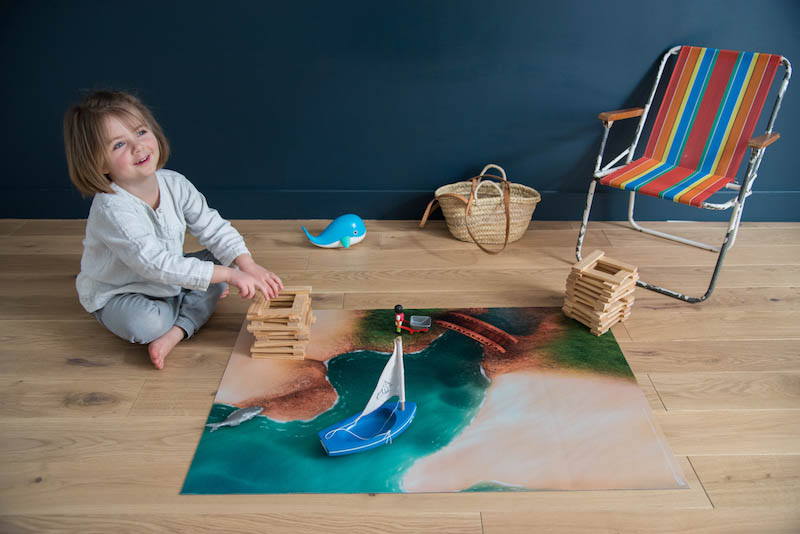 Stimuler la créativité sans contraindre l'imagination. Pour les enfants, le tapis de jeu est structurant, il définit l'espace et donne ainsi de la profondeur au jeu et à l'imaginaire.