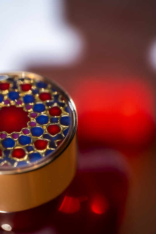Inspiré des zelliges roses de Shiraz, Notte Rossa capte la lumière et transforme chaque motif en récit olfactif. La pistache, hommage aux racines perses, apporte douceur, tandis que la violette et le cèdre renforcent l'élégance et la profondeur. Caramel, badiane et ambre gris prolongent le sillage dans un équilibre gourmand et poudré. Une fragrance qui invite à voyager au coeur de l'Iran, entre raffinement et lumière colorée.