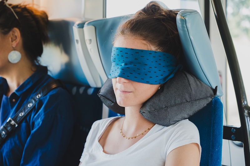 ELLIPSE est un coussin léger et ingénieux, idéal pour les trajets en train ou en avion. Il soutient les cervicales et intègre un masque occultant extensible, que l'on peut positionner sur les yeux, le front ou le cou, pour un maintien optimal et une bulle de repos discrète.