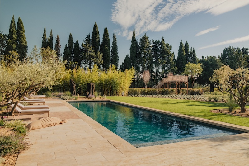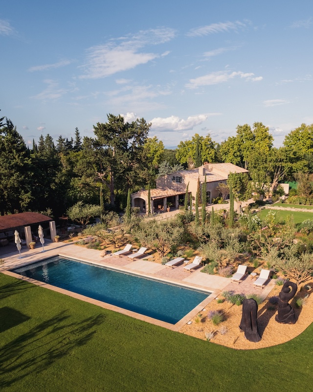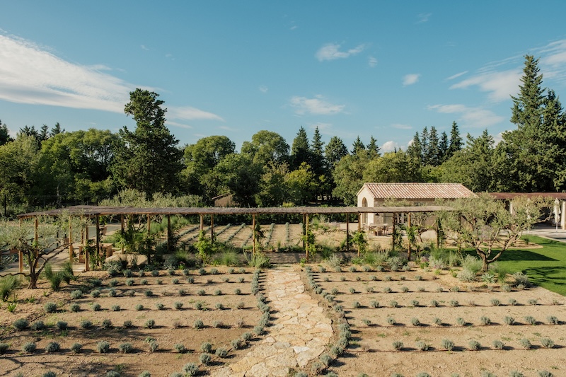 C'est avec des artisans locaux, amoureux de leur région, que le couple de propriétaires, Benjamin et Hélène Moricelly, a repensé ce domaine selon une idée : faire planer une atmosphère de vacances permanente. Ici, on prolonge les repas sur la grande table en bois ou à l'ombre de la cuisine d'été. On lézarde dans le jardin qui cultive la poésie du vivant à travers ses essences colorées et parfumées. On flâne près des champs de lavande, dans le labyrinthe de feu, un espace paysager propice aux promenades sensorielles, avant de mieux l'apprécier en gagnant l'observatoire surélevé. Le panorama y est saisissant de beauté.