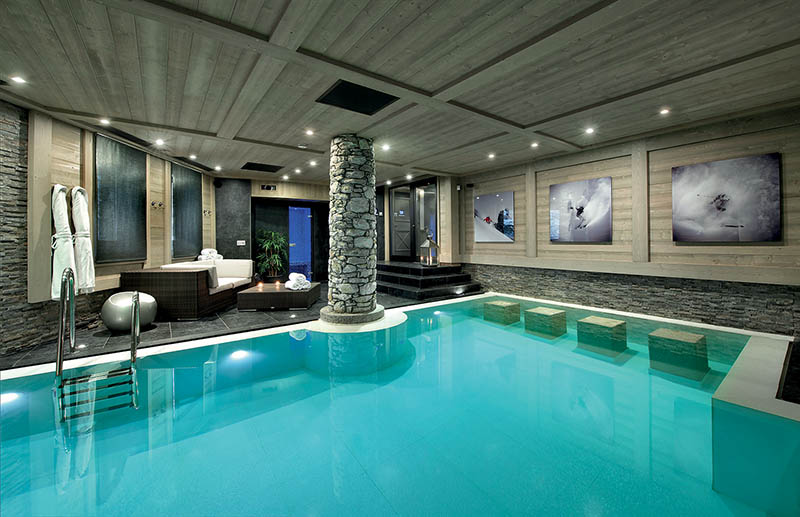 À peine la porte du chalet entrouverte… la magie opère ! Le regard se pose sur l'apaisant espace piscine aux volumes impressionnants. Envoûté par les parenthèses bien-être à venir, vous imaginez la joie des moments partagés en famille à flotter ou nager à contrecourant, puis vous apercevez le hammam et ses délices. Tout près, l'élégante ski room et ses banquettes en cuir vous projettent déjà dans vos futures descentes ou montées aux sommets. Au premier étage, vous glissez délicieusement dans la snow life en version luxe. Bois, pierres, marbre, faïence, étoffes naturelles… l'alliance des matériaux traditionnels de montagne crée une douce atmosphère de convivialité. Le vaste salon tourné vers la cheminée, la salle à manger conçue pour de doux instants de partage, les chambres au style contemporain baignées de lumière, sont autant de promesses de bonheur et de slow living.