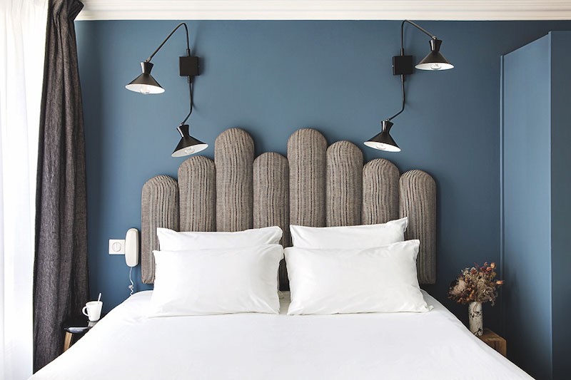 Au coeur d'un quartier vibrant, l'hôtel parisien de la Collection Ginto, détenteur du label « Ocean Friendly Restaurants », s'offre une belle décoration tendance rétro scandinave conçue par la designer d'intérieur Dorothée Mellichzon. Avec leurs tonalités de gris, noir et bleu, leurs papiers peints en trompe-l'oeil et leurs surprenantes têtes de lit oversize, les 38 chambres séduisent aussitôt.