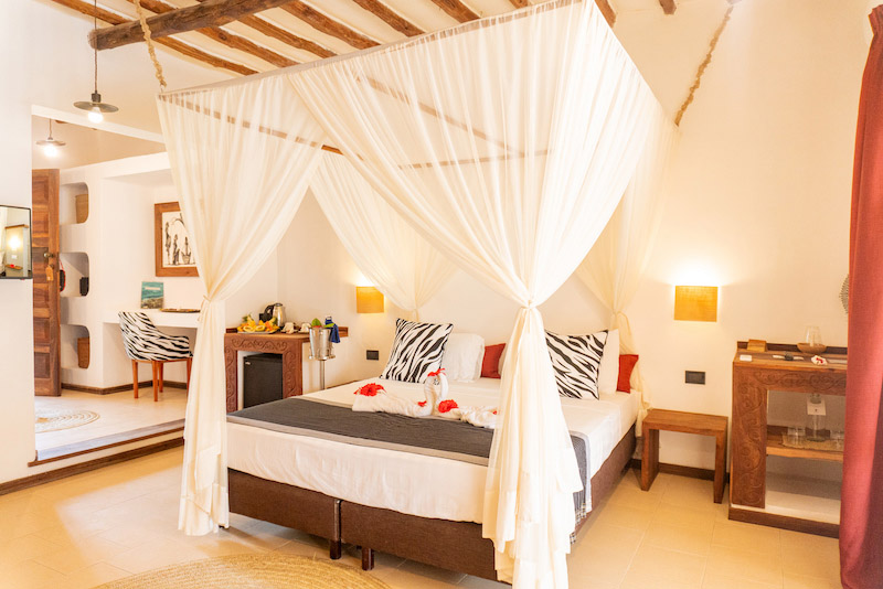 Installé sur l'île principale de Pemba, l'établissement dispose de 138 chambres spacieuses et toutes décorées dans le style traditionnel zanzibarit. Elles bénéficient de la wifi, la clim et de la télévision avec chaînes satellites. Situées au sommet d'une colline, les 28 Garden room sont entourées d'un parc tropical luxuriant, tandis que les Masai pool se répartissent autour de la piscine, près du jardin botanique. Également au sommet de la col- line, les 20 Bondeni pool et les 40 cottages surplombent la piscine. Certaines possèdent une double véranda.