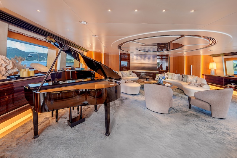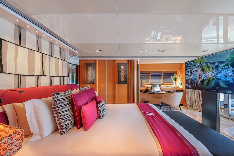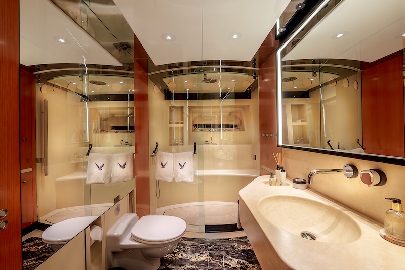 Récemment rénové, le yacht présente une esthétique renouvelée, à l'intérieur comme à l'extérieur, et des améliorations techniques de pointe. Il peut accueillir jusqu'à 12 hôtes dans un cadre raffiné, avec une suite armateur occupant toute la largeur du navire, un pont VIP privatif sur le flybridge et quatre cabines doubles avec salles de bain attenantes.