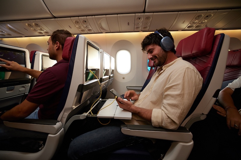 R : Les sièges économiques sont ergonomiques et utilisent jusqu'à 70 % de cuir recyclé, réduisant de 87 % la consommation d'eau et évitant 21 tonnes de déchets. Les passagers bénéficient d'un système de divertissement avec plus de 300 films, 1 000 épisodes de séries et des contenus exclusifs Max, Paramount+ et Disney+, accessibles sur des écrans HD de 12 pouces avec connexion Bluetooth, ainsi que des cartes 3D interactives de leurs destinations favorites.