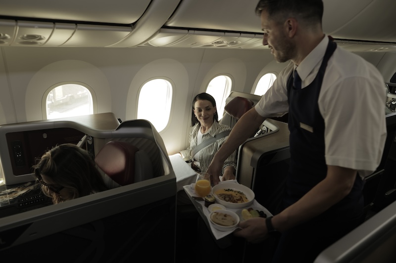 Q : Quelles mesures de durabilité et d'expérience aéroportuaire complètent la cabine business ?